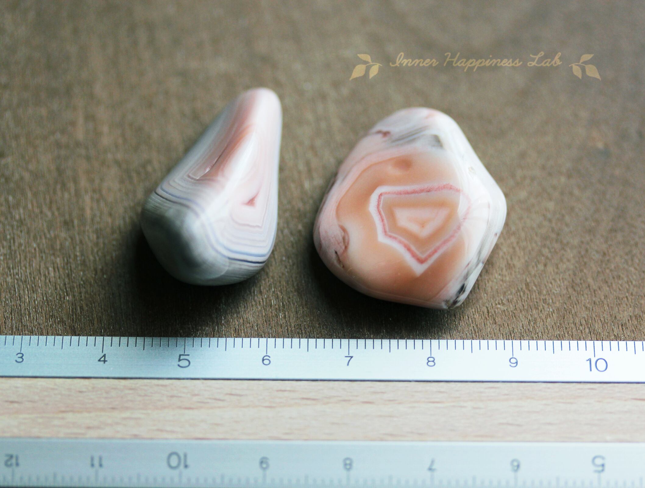 優しい色合いのピンクとベージュの縞模様がとても美しいボツワナアゲートのタンブルです。その絶妙な色合いに心もほっこり和んでいくことでしょう。