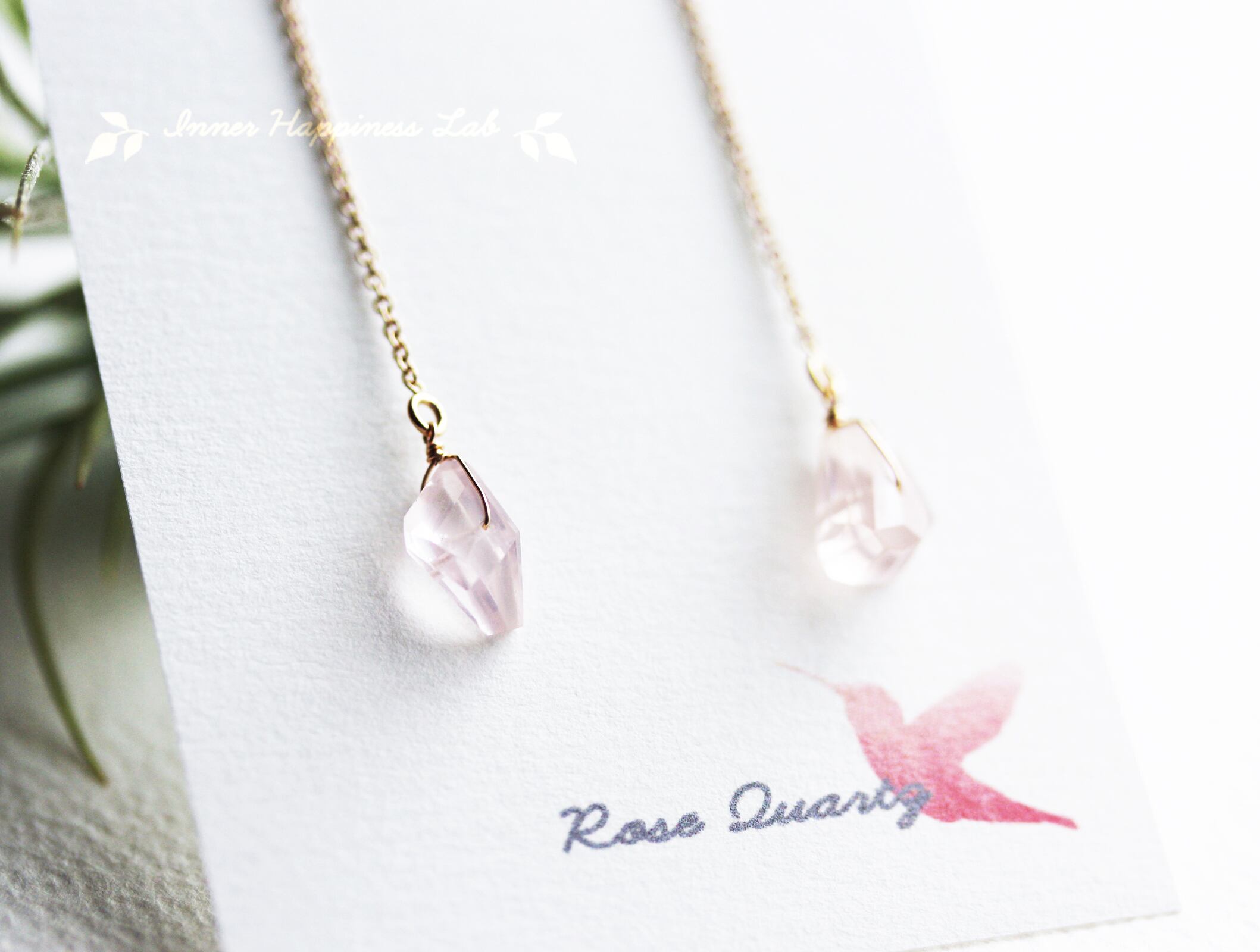 14KGF/ ラフカットローズクォーツのアメリカンピアス