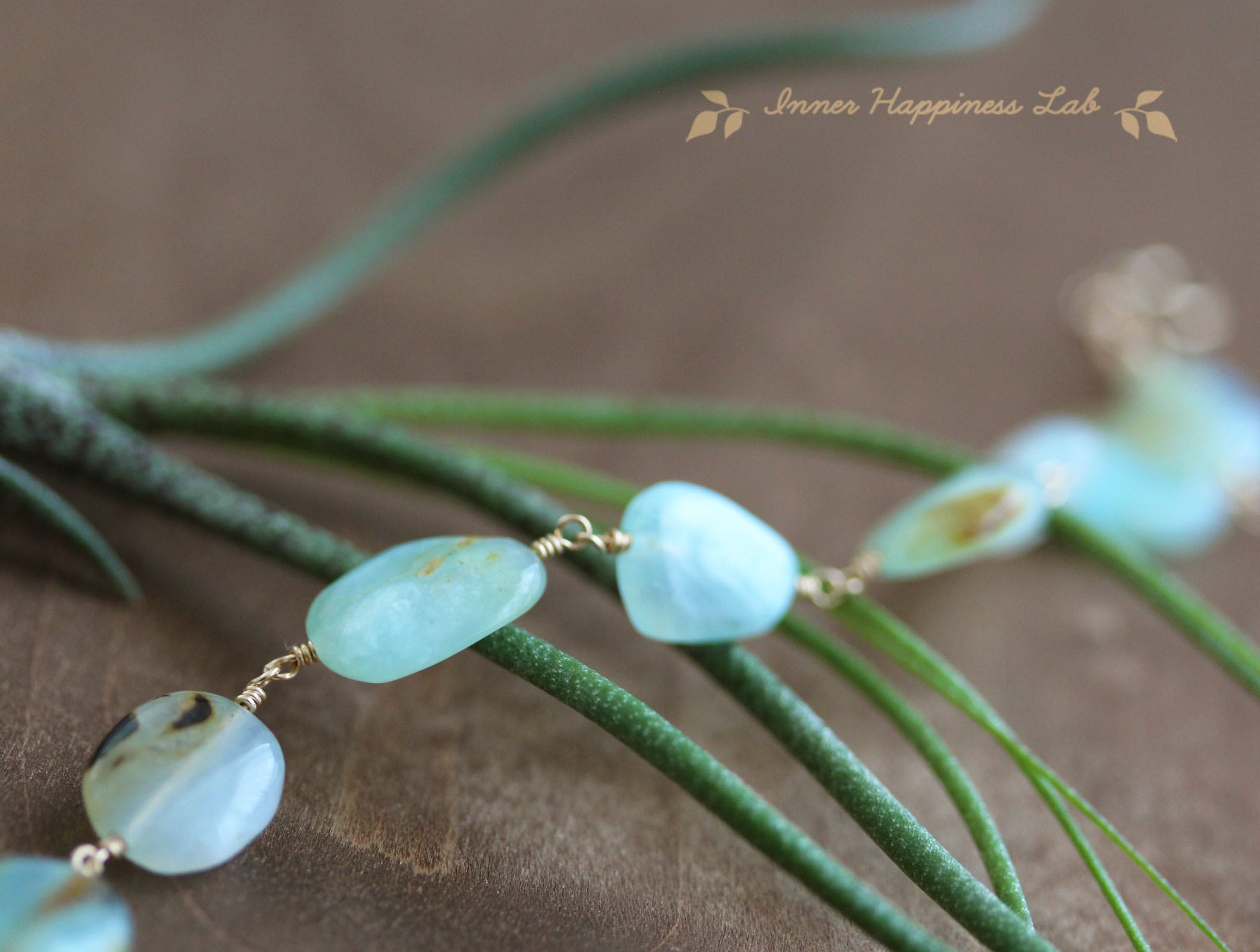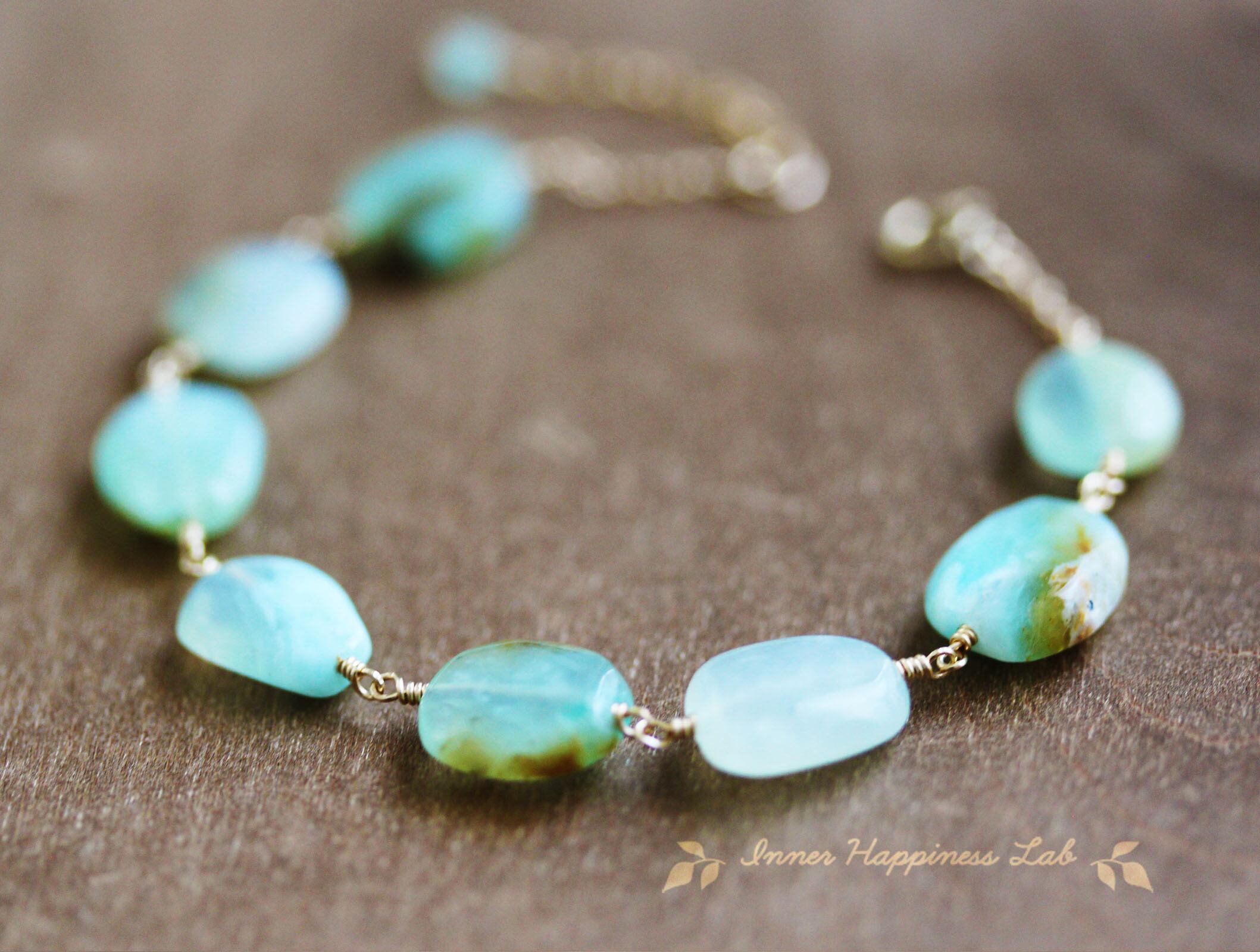 美しく透き通るブルーグリーンをしたペルー産ブルーオパールをブレスレットに仕立てました。
