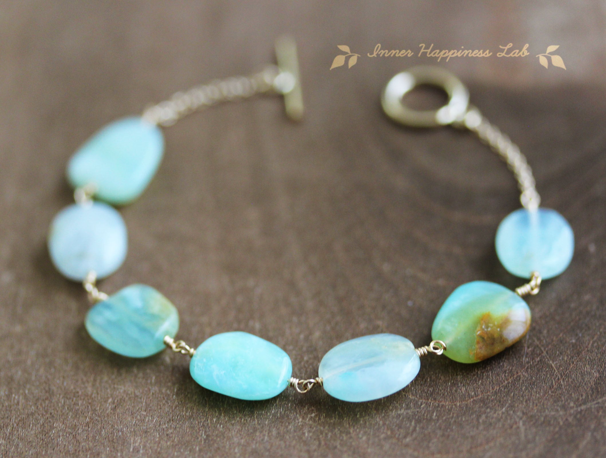 美しく透き通るブルーグリーンをしたペルー産ブルーオパールをブレスレットに仕立てました。