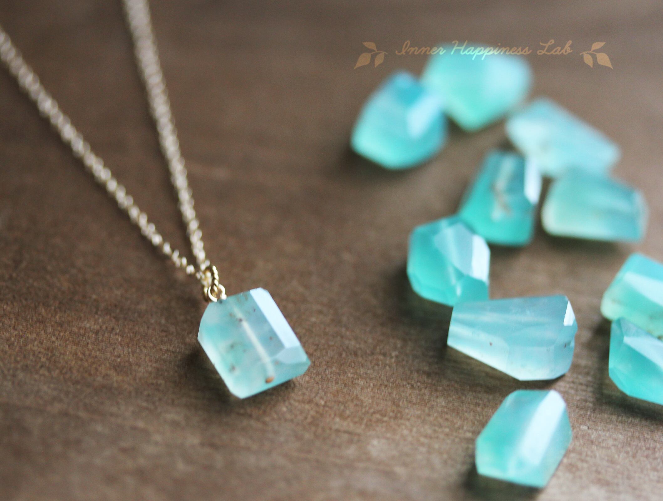 近年アフリカで発見されたとても新しい石、アクアプレーズ のネックレスです。