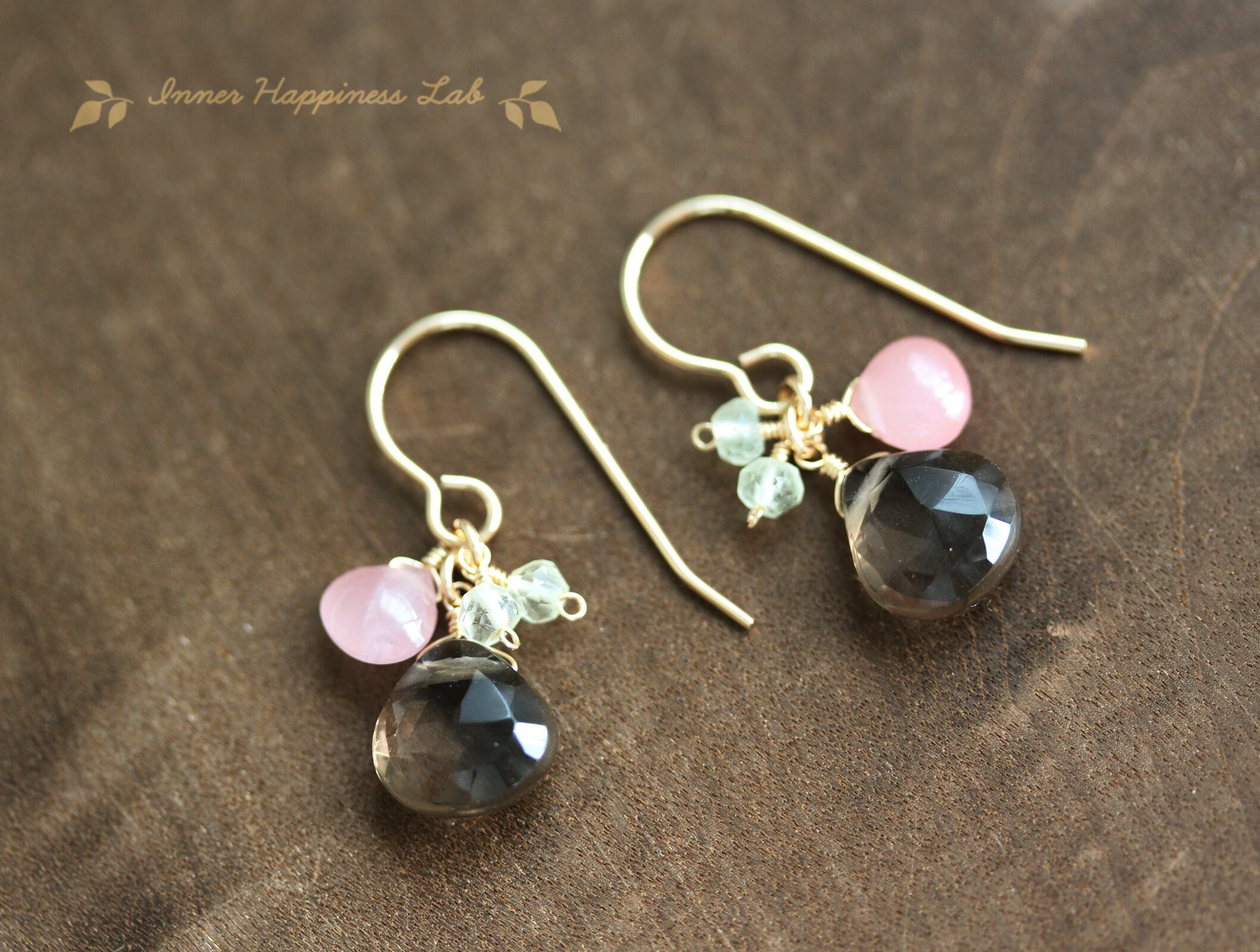 14KGF/ グァバクォーツとスモーキークォーツの小春ピアス