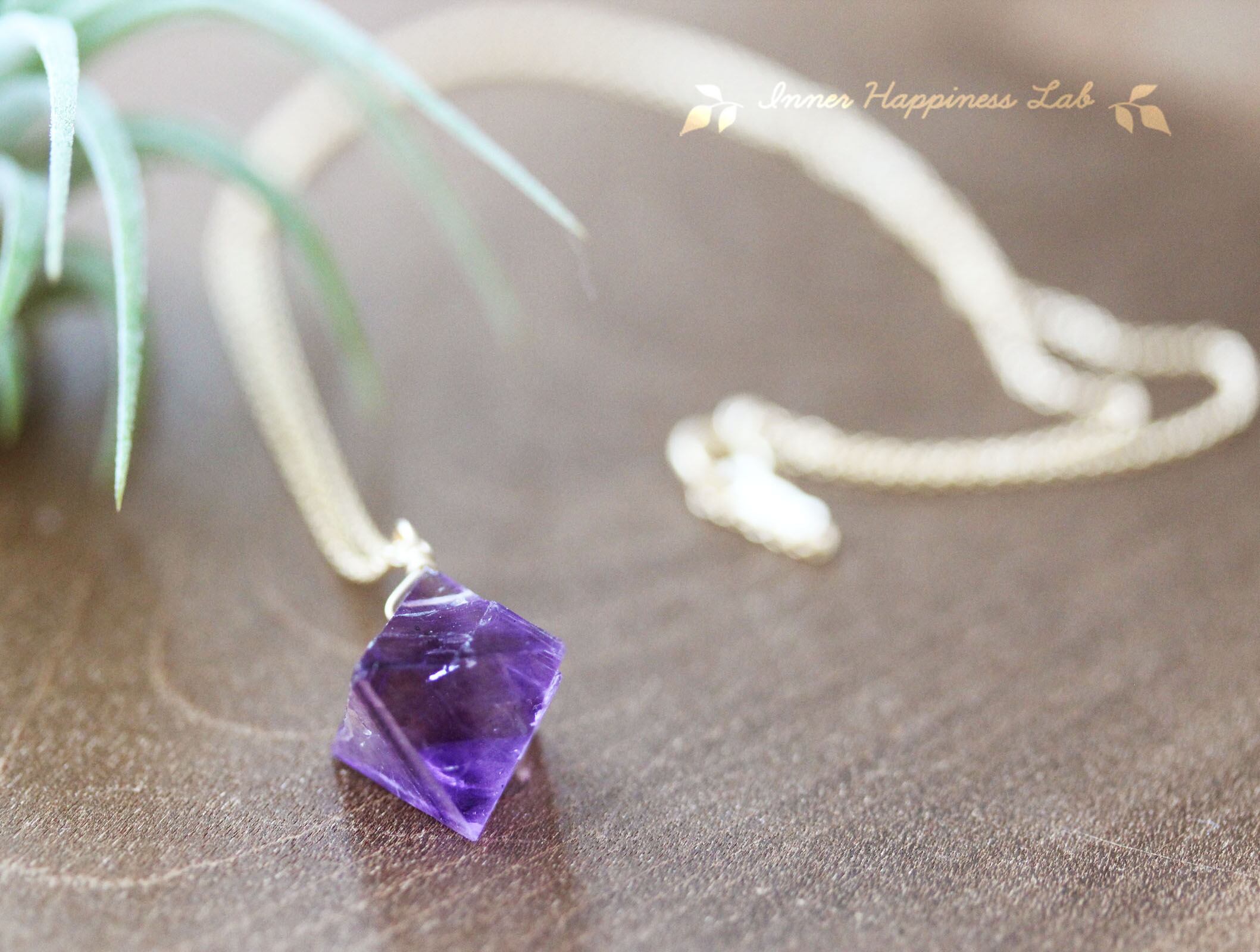 濃いバイオレットの色合いがどこからみても美しいイリノイ産のフローライトの原石をネックレスに仕立てました。
