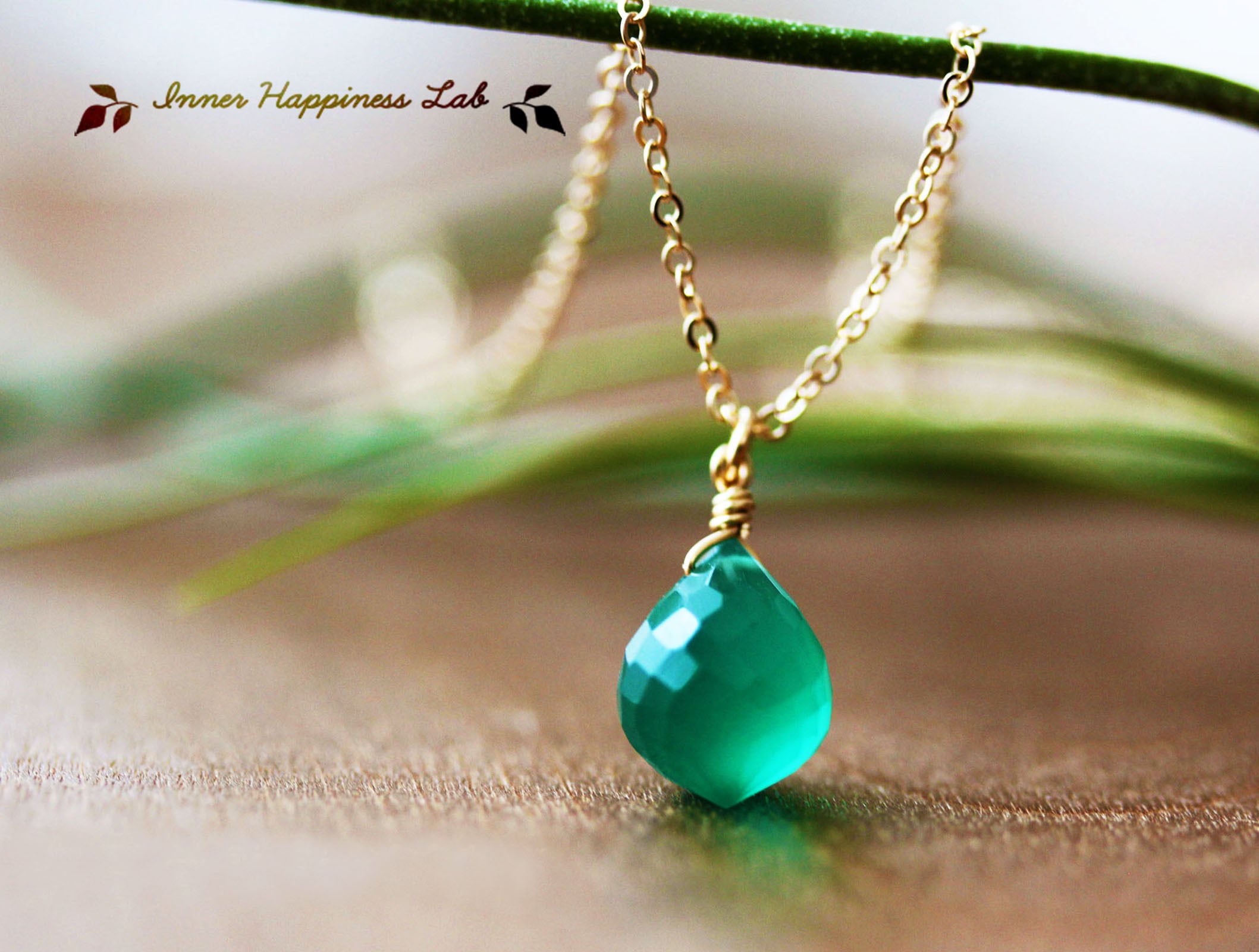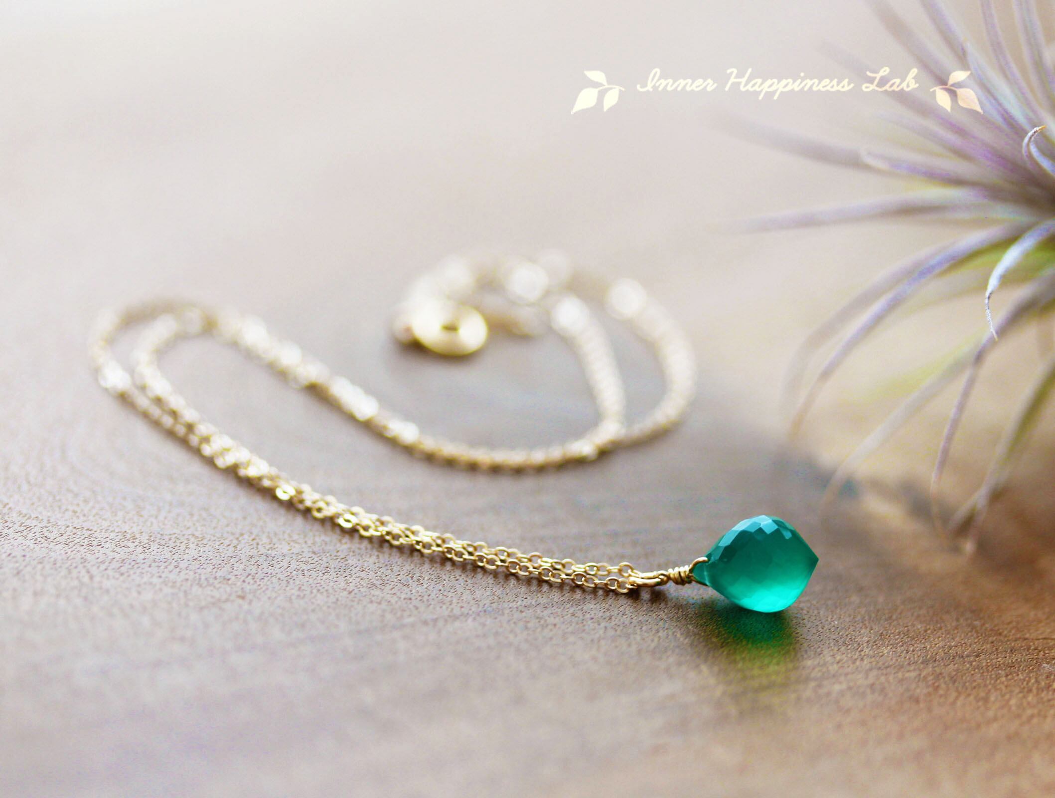 14KGF グリーンオニキス オニキス ネックレス オニオンカット ブリオレットカット 森 新緑