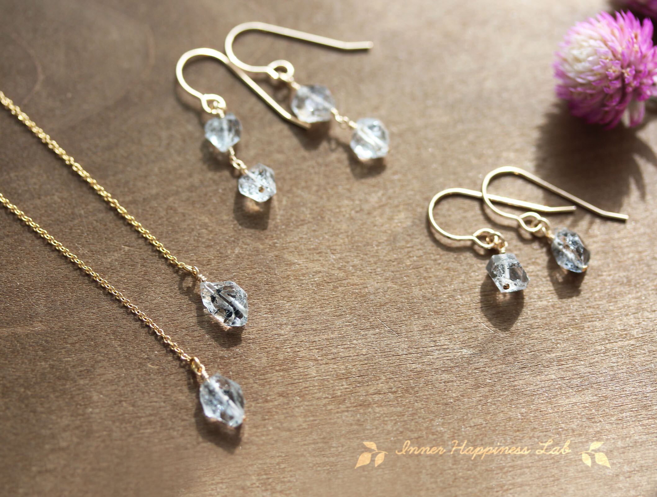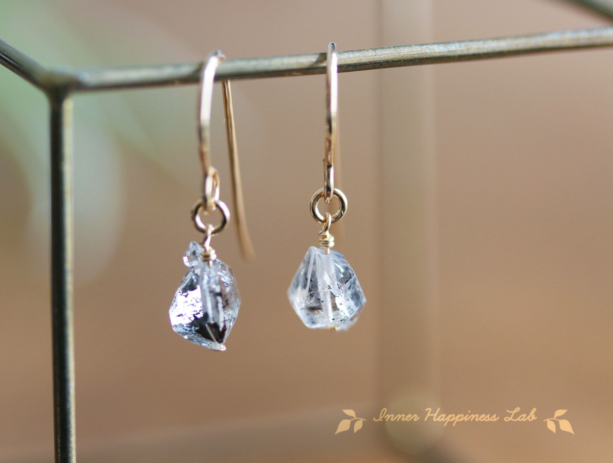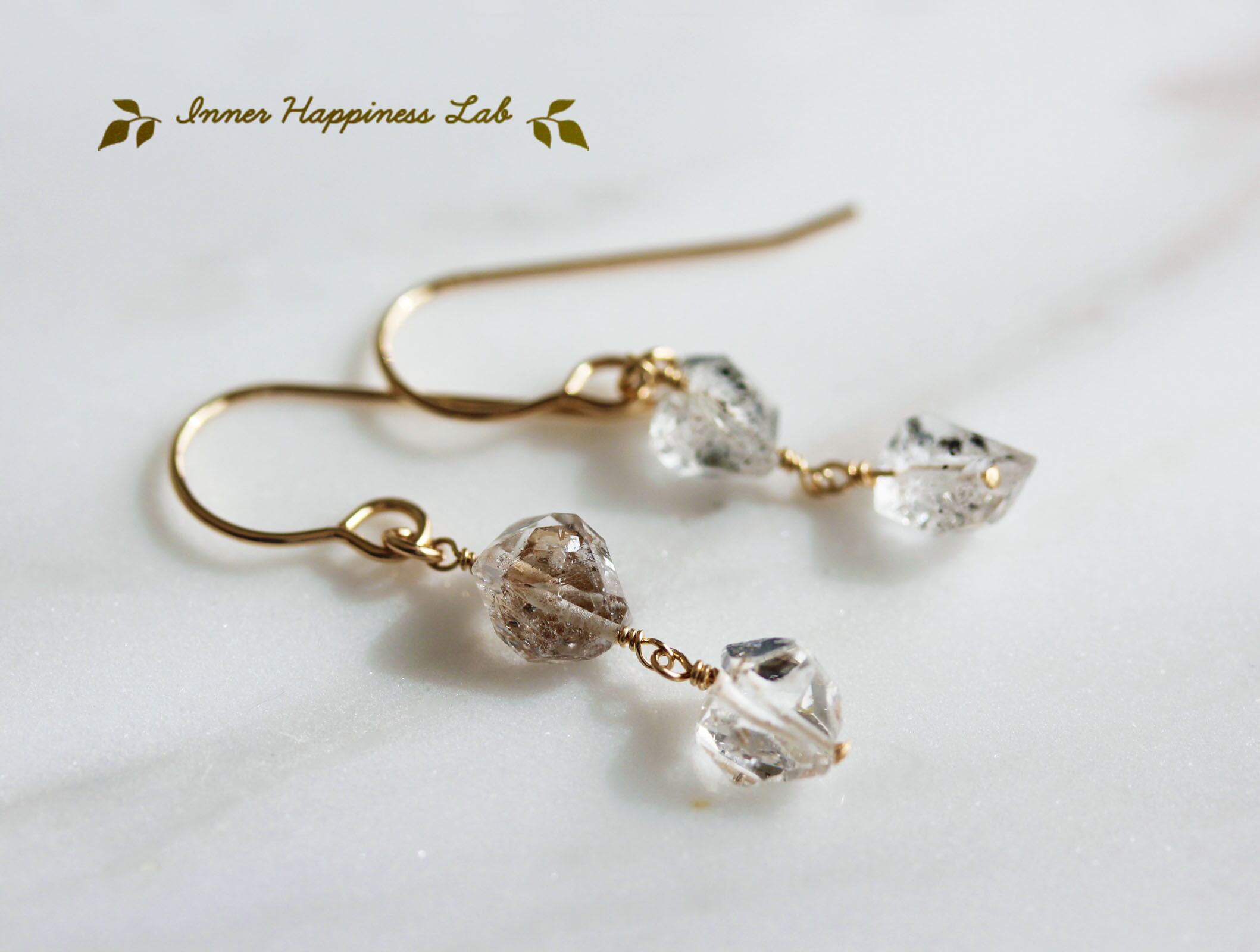 14KGF パキスタン産 ハーキマー ダブルポイント クリスタル ダイヤモンド クォーツ ピアス 原石