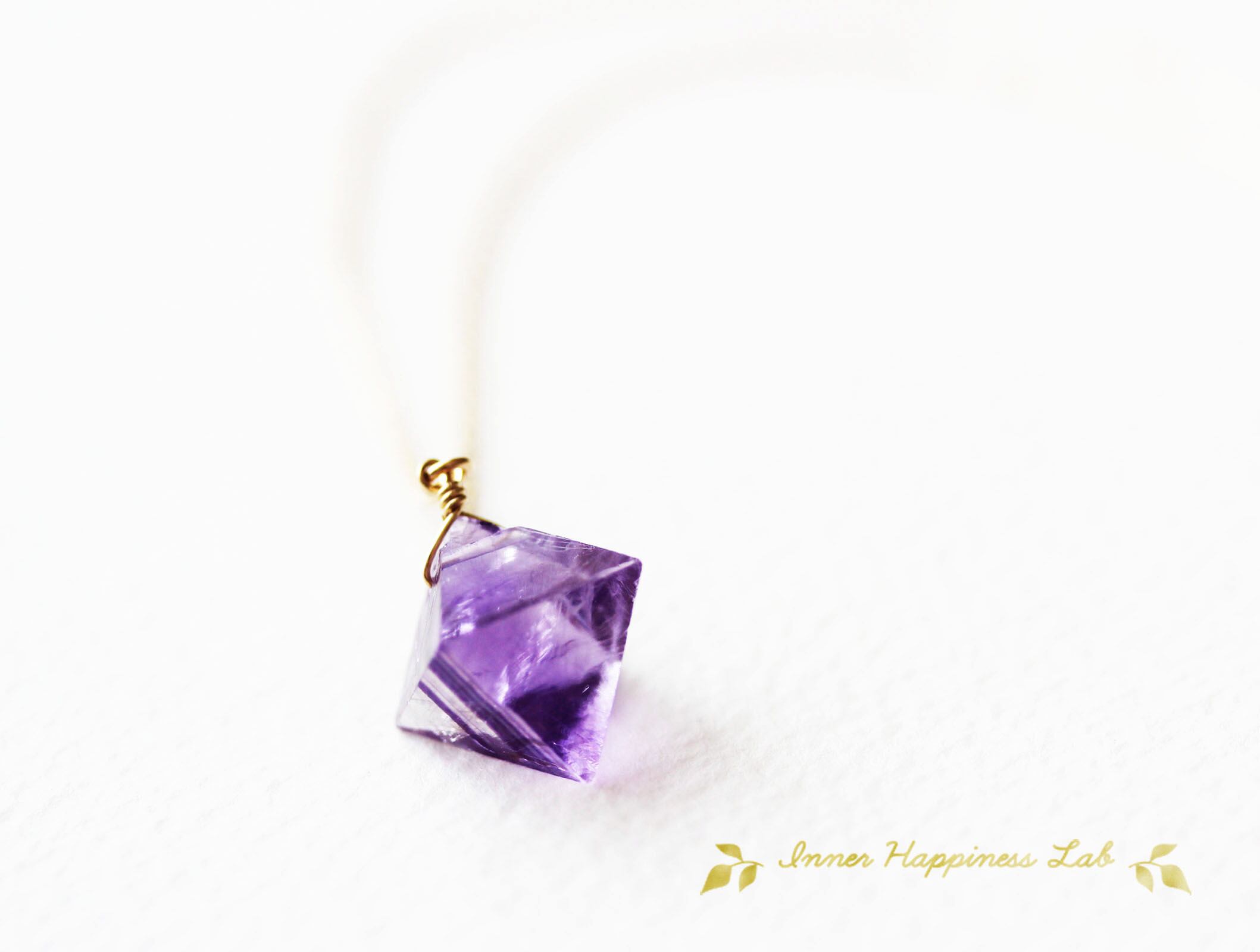 透明感の高いパープルの色合いがとても美しいイリノイ産のフローライトをネックレスに仕立てました。微妙に色合いにコントラストがあり、そのナチュラルな色合いをぜひご堪能ください。