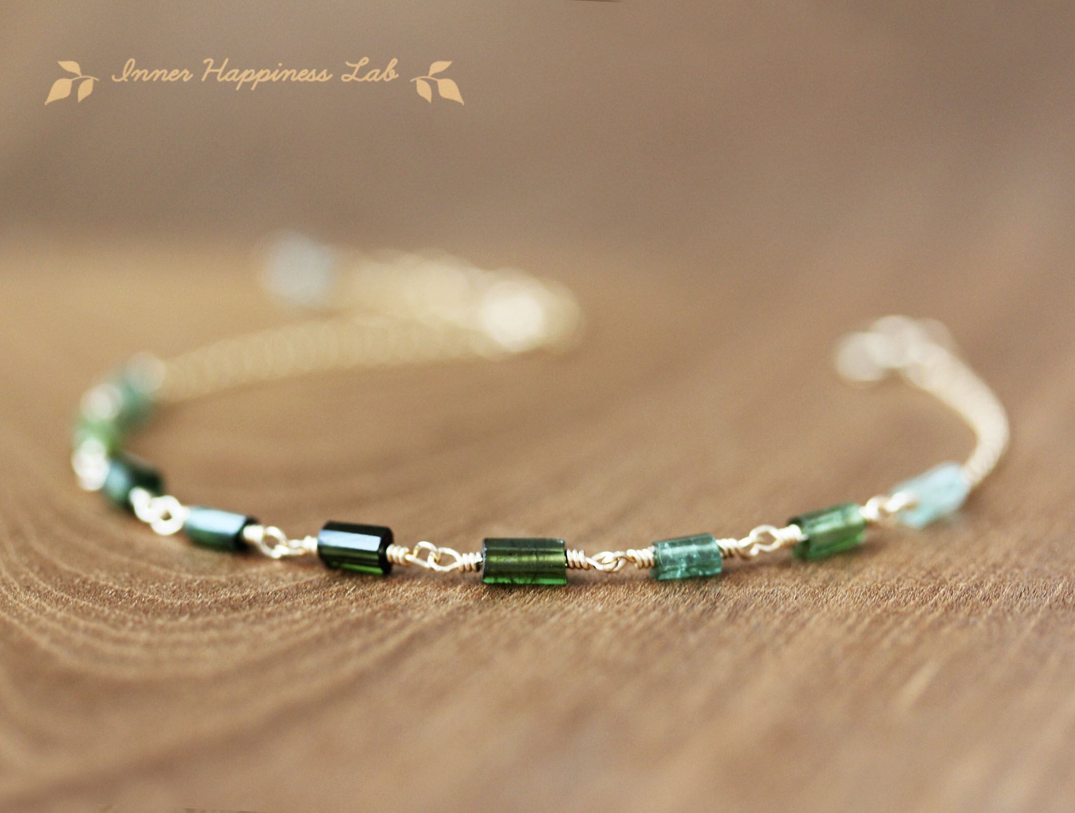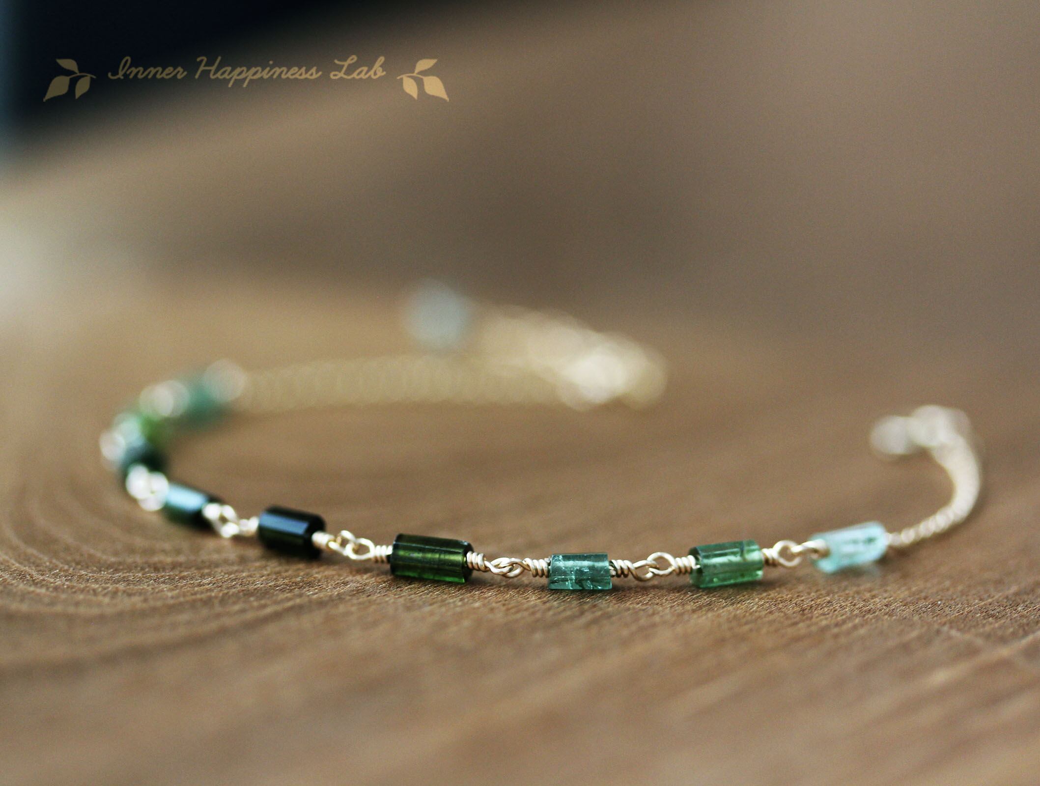 14KGF トルマリン グリーントルマリン ステック ブレスレット 電気石 ヴェルデライト ベルデライト