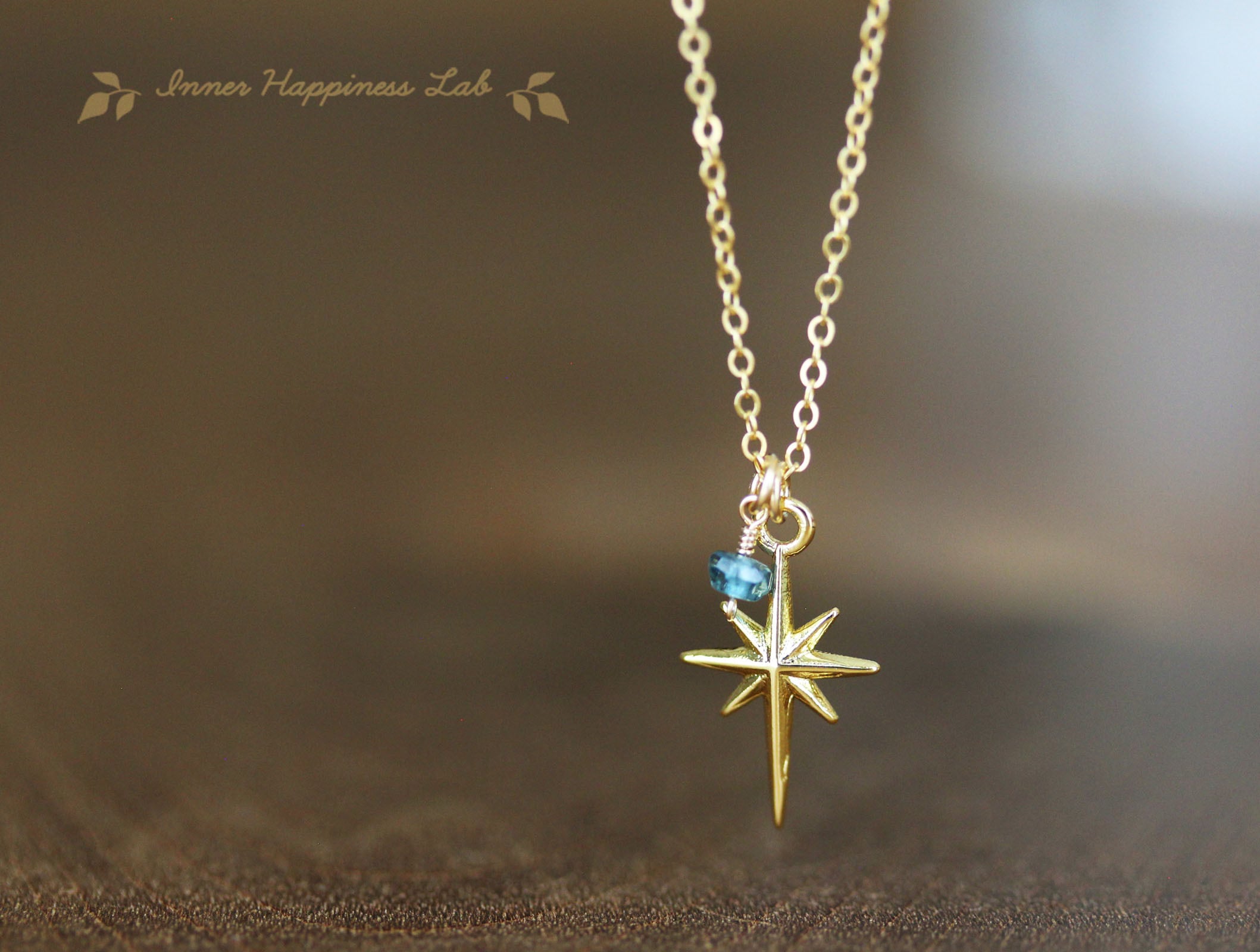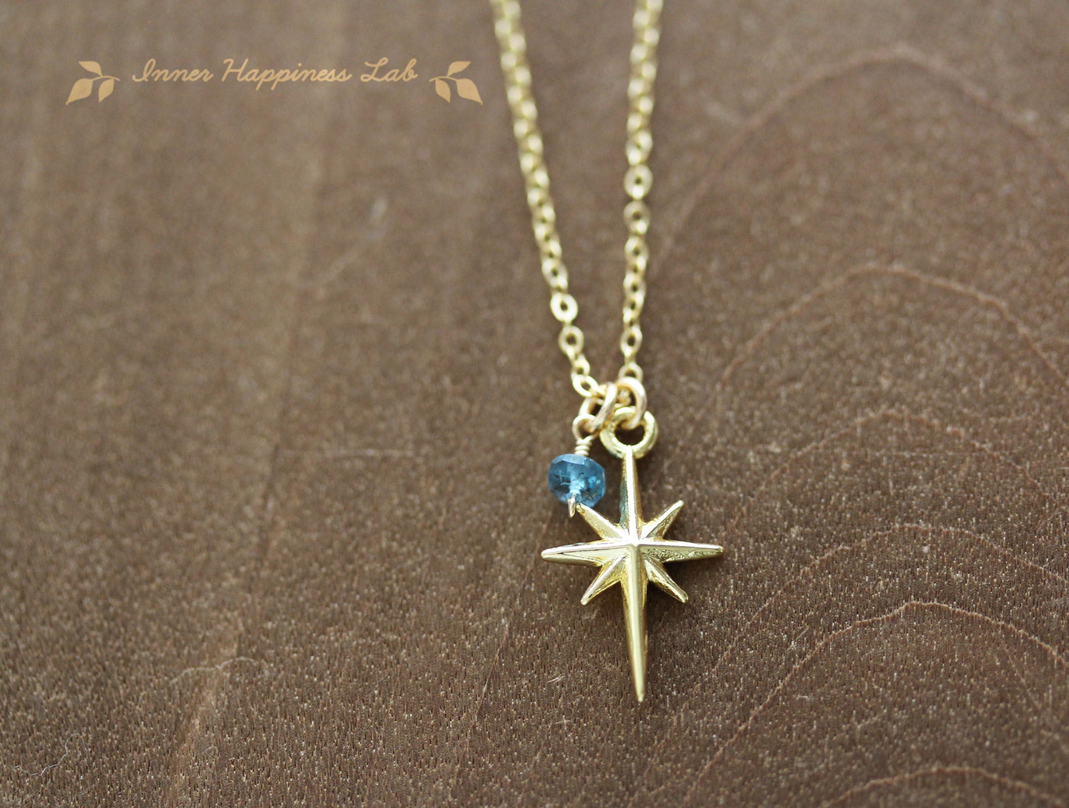 14KGF/ モスカイヤナイトの星空ネックレス 一番星 八芒星 北極星