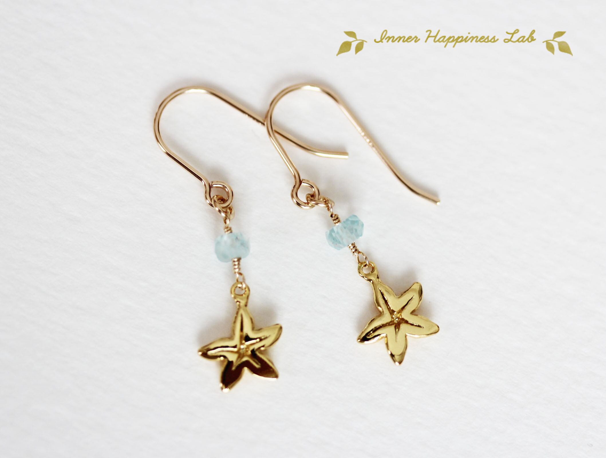 14KGF/ 海の星 ヒトデのピアス アクアマリン付き スターフィッシュ