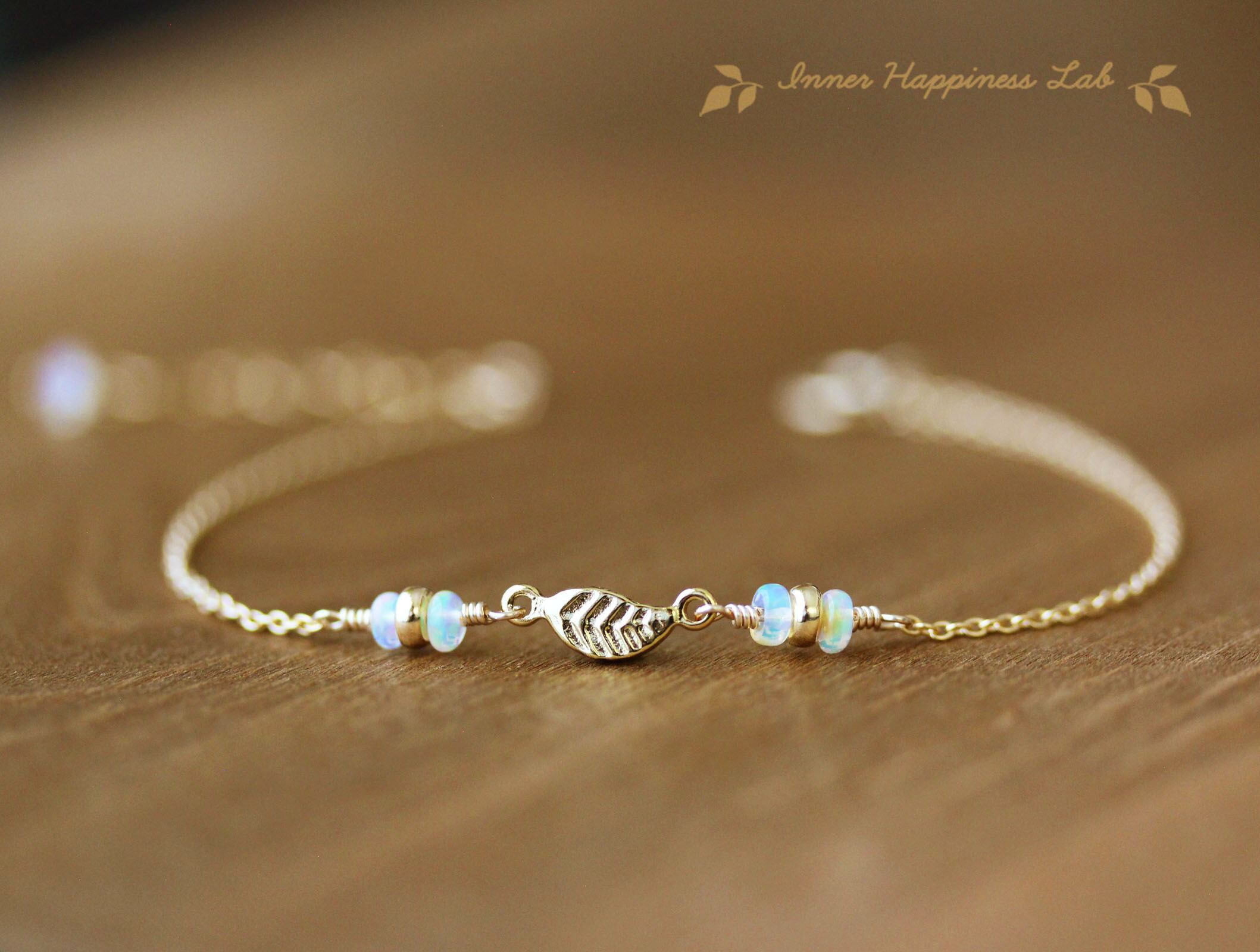 14KGF オパール エチオピアンオパール ホワイトオパール 葉っぱ リーフ チャーム ゴールド ブレスレット