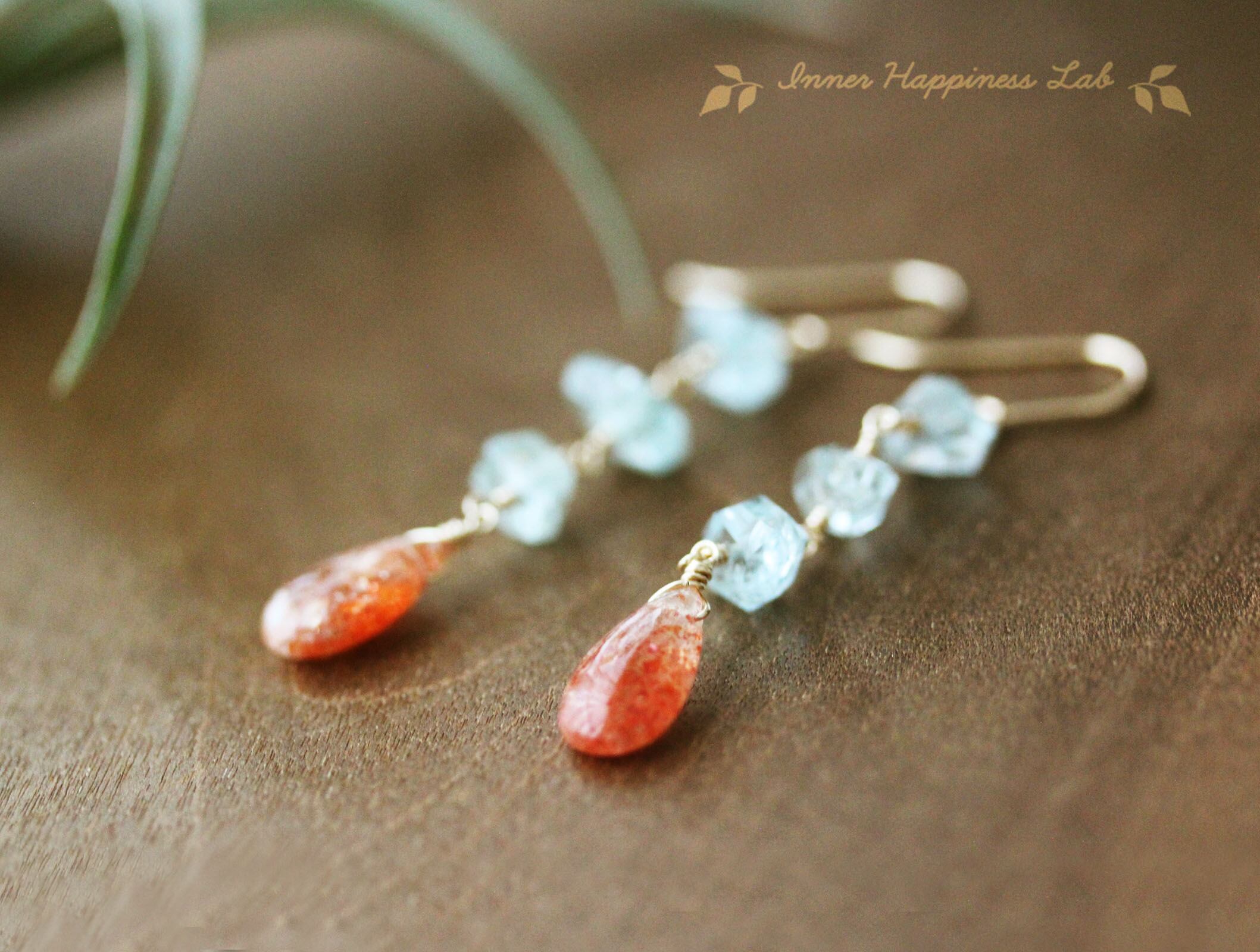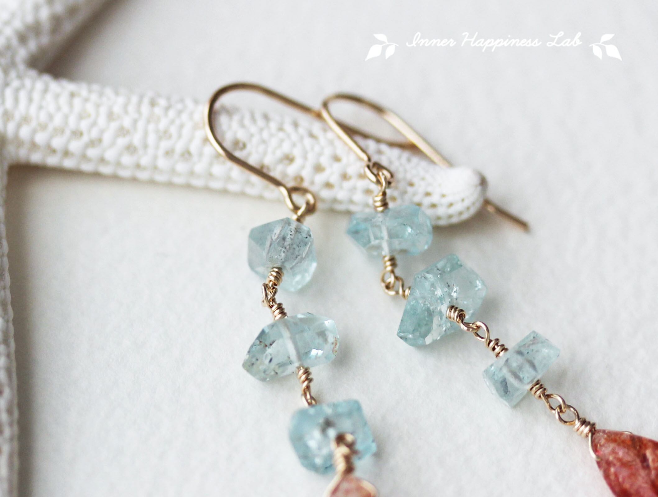 14KGF/ サンストーンとアクアマリンの浜辺ピアス