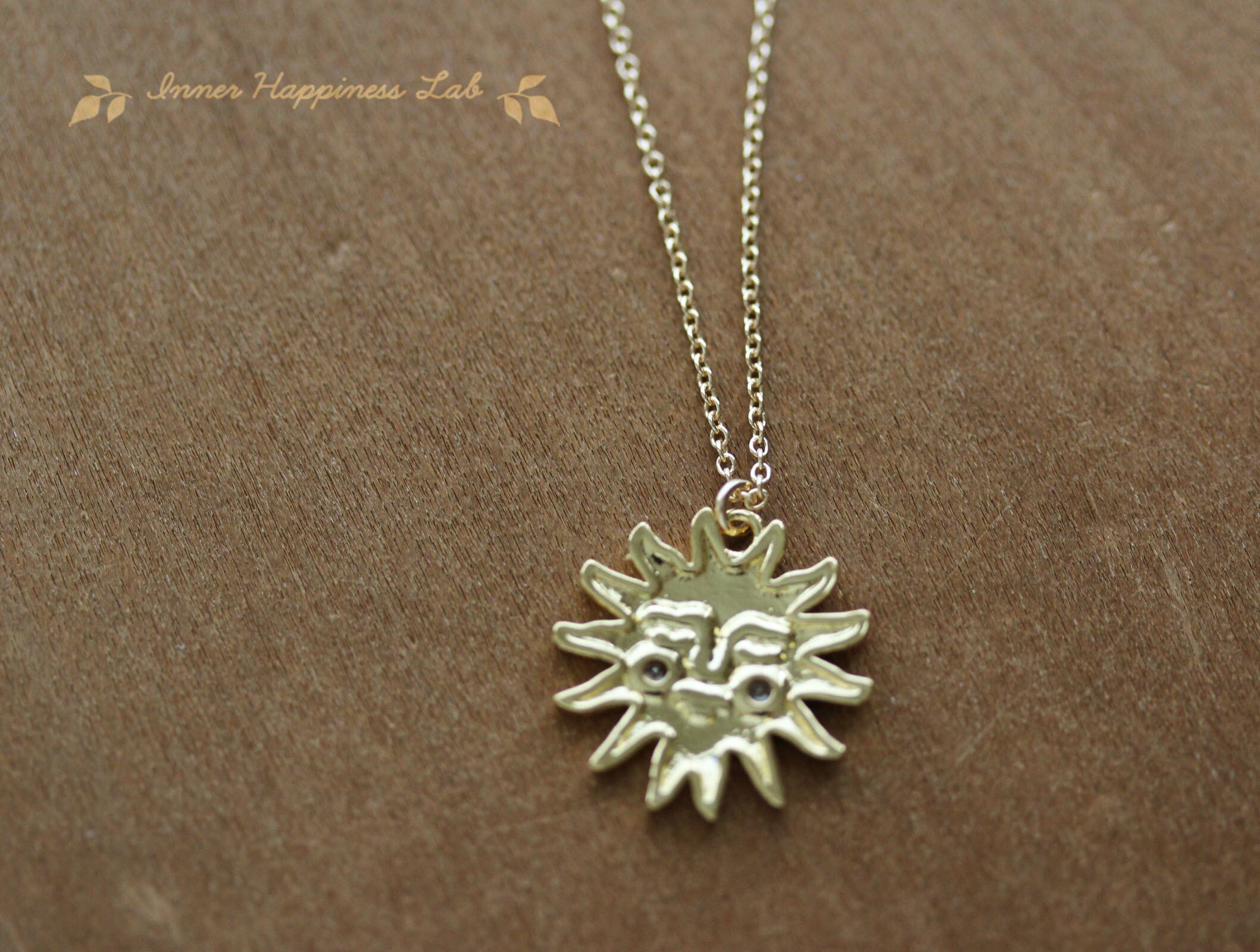 太陽 ネックレス 太陽の顔 サンフェイス ジルコニア 14KGF
